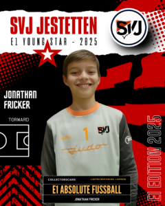 1 Jonathan Fricker #1NameJonathan FrickerNationalityGermanyPositionGoalkeeperCurrent TeamSVJ Jestetten 1920 e.V.LeaguesE1Seasons2025Age0Über Jonathan Fricker